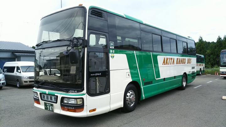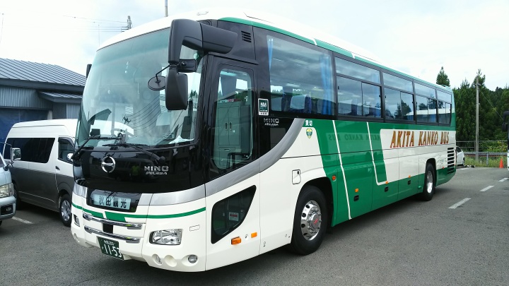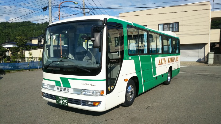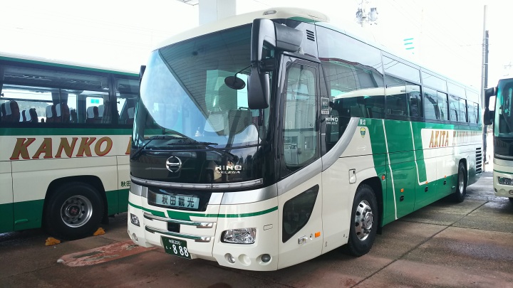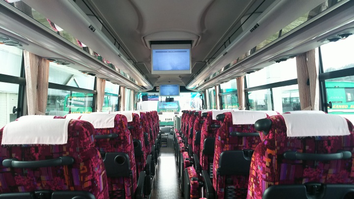 | 客席45+補助席8 運転席1 ガイド席1 座席回転式二列サロン 湯沸かしポット 冷蔵庫 地デジ DVD 3スパン貫通トランク 衝突被害軽減ブレーキ装置 車線逸脱・車両ふらつき警報装置 |